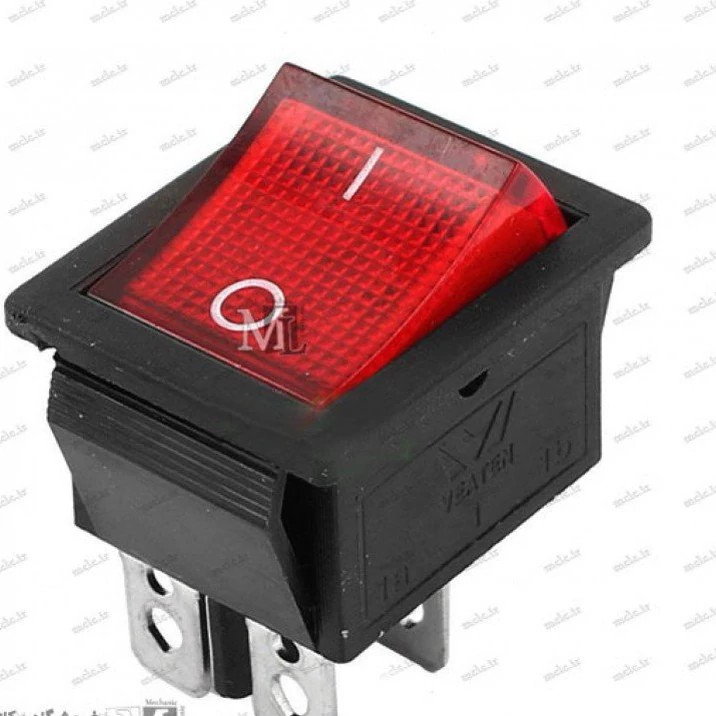 کلید راکر ۰و۱ چراغ دار دارای فنر داخلی قوی دارای تحمل جریان ۱۶ امپر در ۲۵۰ ولت تحمل عبور ۴۰۰۰ وات