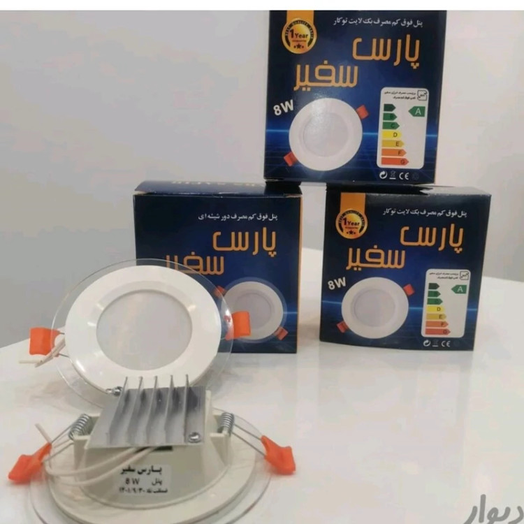 پنل ۸ وات واقعی دورشیشه برند پارس سفیر با ۱۵ ماه ضمانت تعویض در رنگ سفید و آفتابی و صدفی کیفیت عالی و قیمت مناسب ساخت ایران بدنه abs و هیت سینک المینیومی