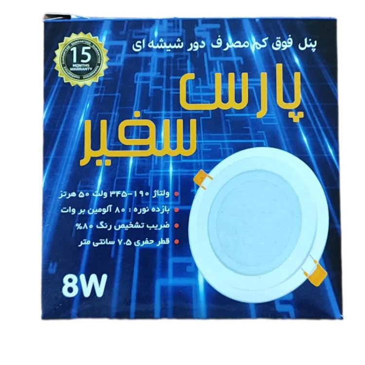 پنل هالوژن 8 وات دورشیشه ال ای دی پارس سفیر 15 ماه گارانتی (هشت وات) (پس کرایه)