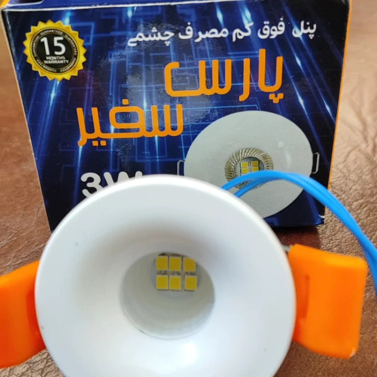 هالوژن چشمی 3 وات واقعی برند پارس سفیر کالای ایرانی با کیفیت و طول عمر بالا همراه با یکسال گارانتی در رنگ های سفید آفتابی نچرال نور طبیعی مدل لنز دار با چیپ smd مناسب برای سوراخ به قطر 3 تا 4 سانت ارتفاع محصول 2.5 سانت طول فنر تا فنر 3 سانت قطر روی هالوژن 4.8 سانت