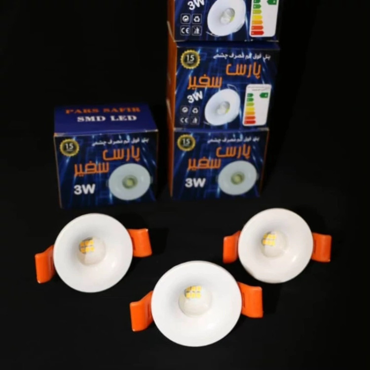 هالوژن 3 وات مدل چشمی گرد پارس سفیر لنزی 15 ماه گارانتی نور سفید و آفتابی (سه وات) (پس کرایه)