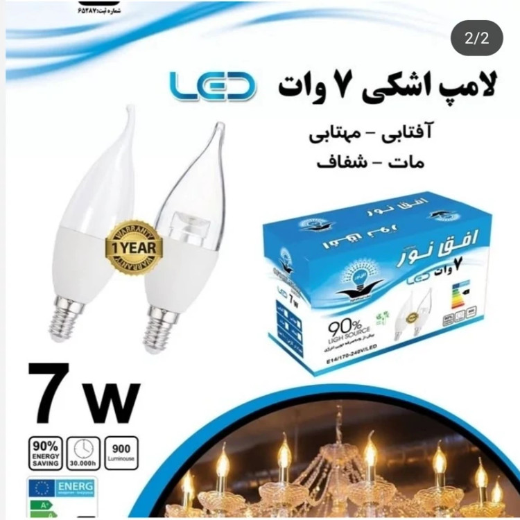 لامپ لوستر7 وات ال ای دی اشکی شفاف افق نور پایه e14